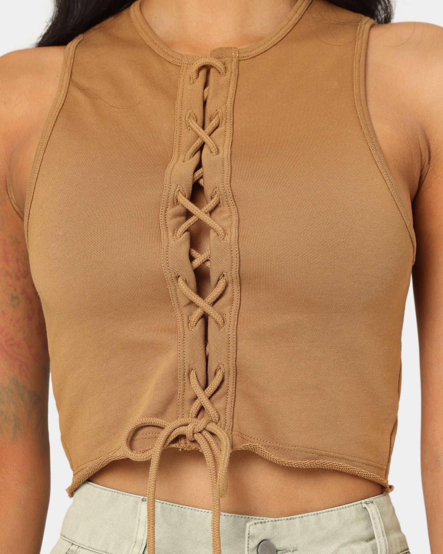 EN ES Women's Reny Lace Up Crop Top Tan